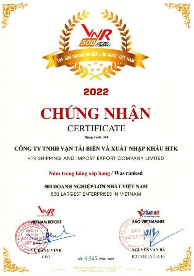 Công ty TNHH Vận tải Biển và Xuất Nhập Khẩu HTK là một trong những doanh nghiệp vận tải biển hàng đầu tại Việt Nam. Theo báo cáo của VNR500 – bảng xếp hạng 500 doanh nghiệp lớn nhất Việt Nam năm 2022, Công ty HTK đã lần đầu tiên lọt vào top 500 doanh nghiệp lớn nhất với vị trí 324.